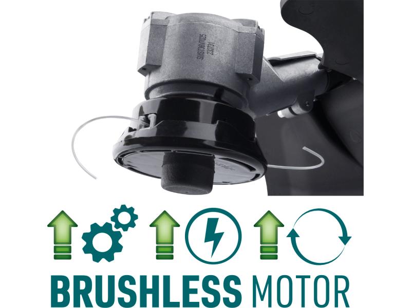 - A modern szénkefe nélküli (brushless) motor biztosítja a nagyobb teljesítmény leadást, miközben kevesebb energiát használ fel mint a szénkefés motor, az akkumulátorral több munka végezhető el, illetve az ilyen motor élettartama is hosszabb.