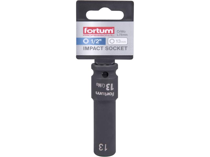 gépi (impakt) dugófej 1/2", 13 mm, L 78 mm, feketített, FORTUM