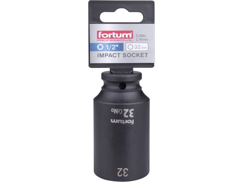 gépi (impakt) dugófej 1/2", 32 mm, L 78 mm, feketített, FORTUM