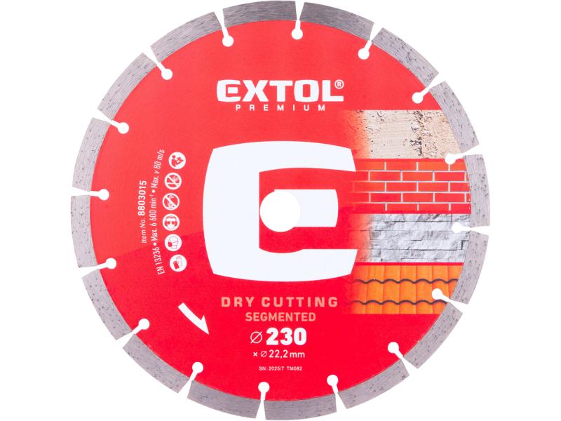 A kiváló minőségű gyémántvágó korongok nagy teljesítményű szerszámok melyek alkalmazásuk során nagy igénybevételnek vannak kitéve, alkalmasak professzionális és félprofesszionális felhasználásra. Az Extol Prémium gyémántvágó korongok megbízható, általános felhasználású vágószerszámok, melyek megfelelő biztonságot garantálnak Önnek a munkavégzés során A gyémántvágó korongot beton, tégla, cserép, téglafal, kő, gránit vágásra lehet használni. A megfelelő használatát a termék melletti tájékoztatóban olvashatja.