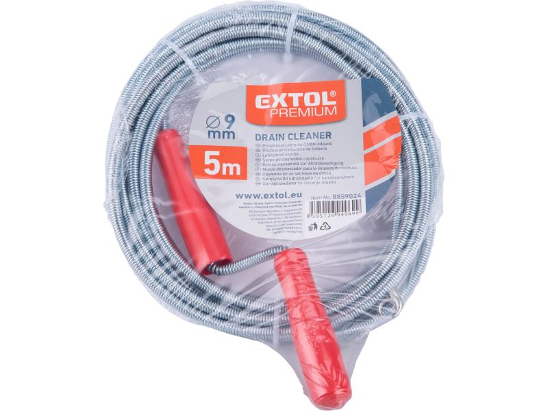 lefolyócső tisztító, 5m, 9mm átmérő, kézi tekerővel, tisztító körömmel, (1,9mm drótból sodorva)