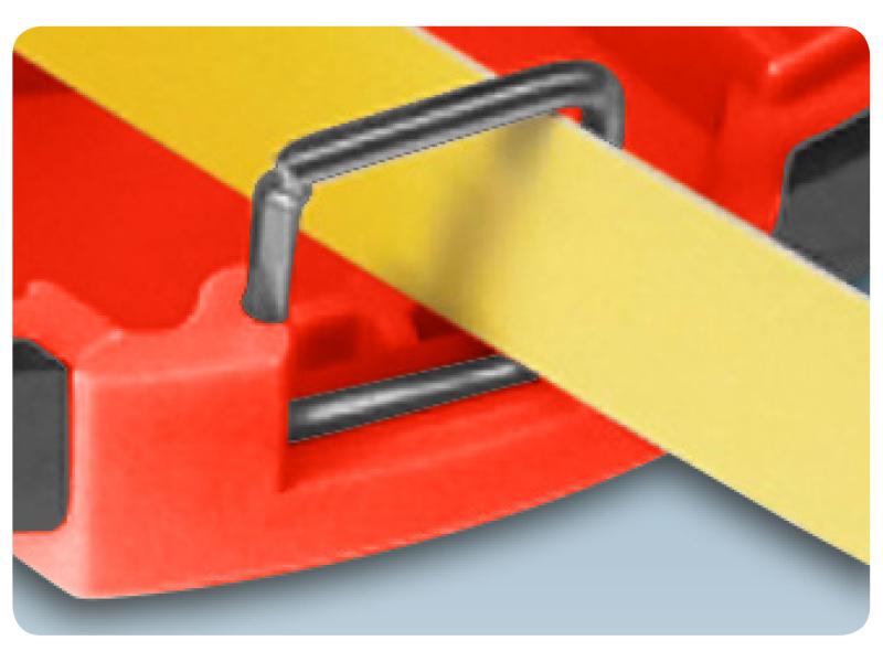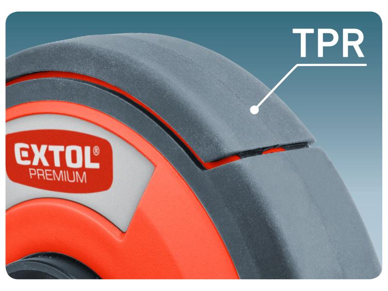 ABS műanyag ház, csúszásgátló TPR gumis részekkel. Bevonatos fém szalag, 0,16mm vastag. CE, Class II. Belső áttétel: 3:1, a gyorsabb felcsévélés érdekében.