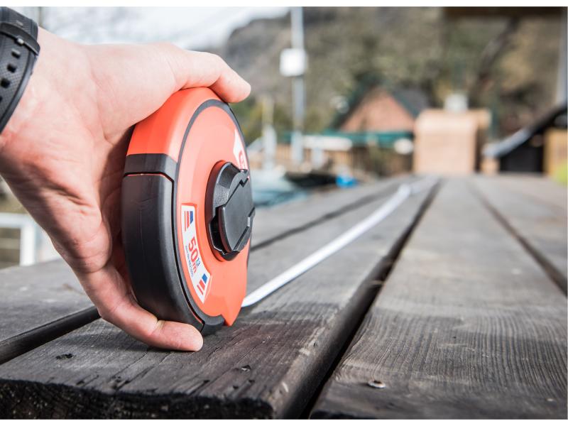 ABS műanyag ház, csúszásgátló TPR gumis részekkel. Bevonatos fém szalag, 0,16mm vastag. CE, Class II. Belső áttétel: 3:1, a gyorsabb felcsévélés érdekében.