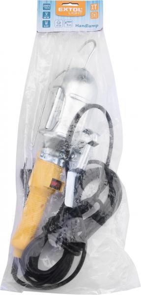 munkalámpa, izzó nélkül, E27 foglalat, max. 60W; kampós akasztó + csiptető, 230V/50Hz, 5 m kábel