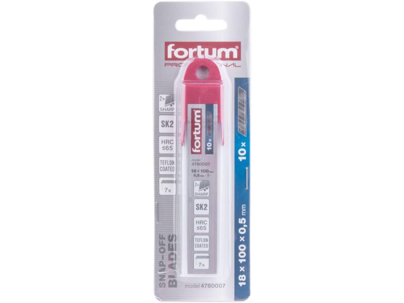 A 4780022, 4780023 és 4780024 késekhez ajánljuk. A legnehezebben törhető penge: HRC <= 65 keménységgel, SK2 acélból, ULTRA SHARP lézertechnológiával készült és progresszív, 2-szer élesített éllel. Akár 4×szeres élettartam a hagyományos szénacélpengékkel összehasonlítva. A 18 mm széles Fortum pengék 0,5 mm vastagsággal rendelkeznek.