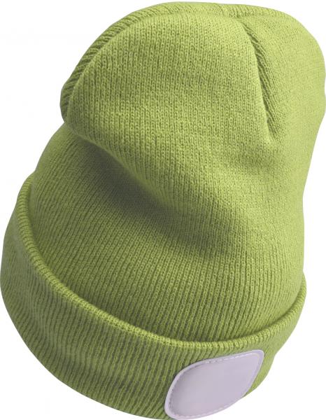 sapka, zöld, kötött, kivehető LED homloklámpával, 4×45 Lumen; USB tölthető Li-ion akku, 3 funkció (100%-75%-50% fényerő)